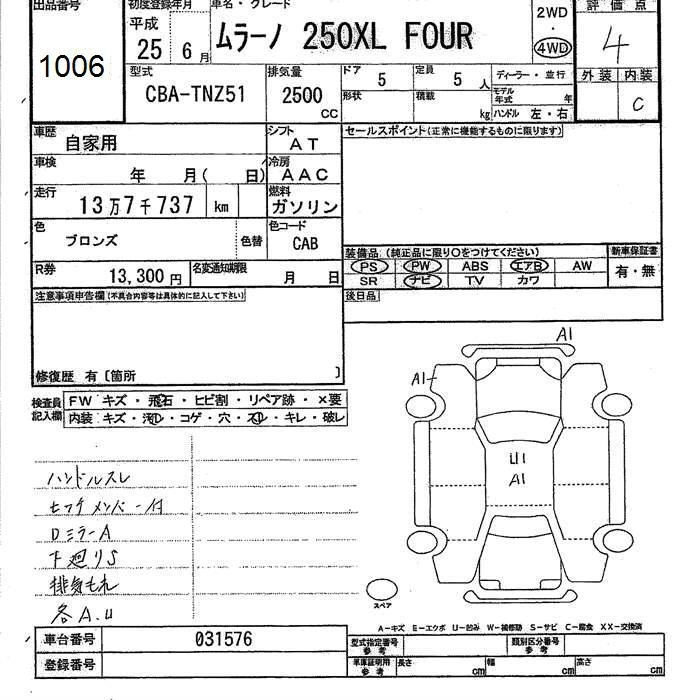 NISSAN MURANO 2013 г., лот № 1006
