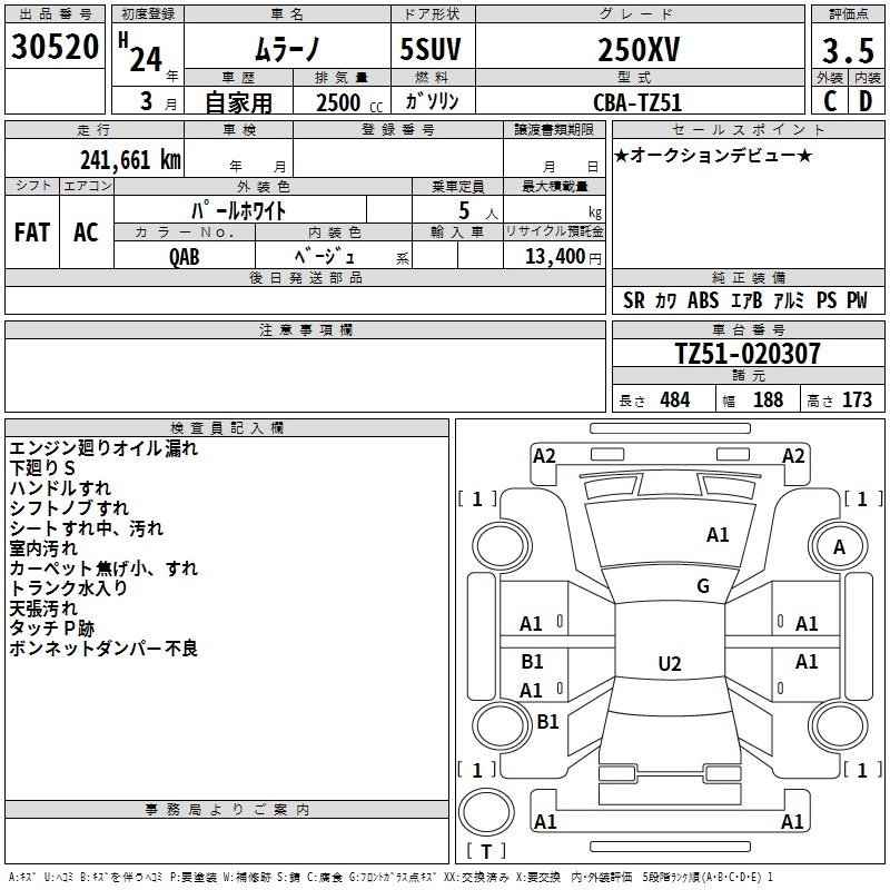 Статус выставлен на аукцион Лот 30520 Аукцион TAA Chubu Дата аукциона 12.03.2026