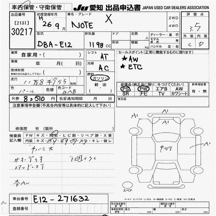 NISSAN NOTE 2014 г., лот № 30217