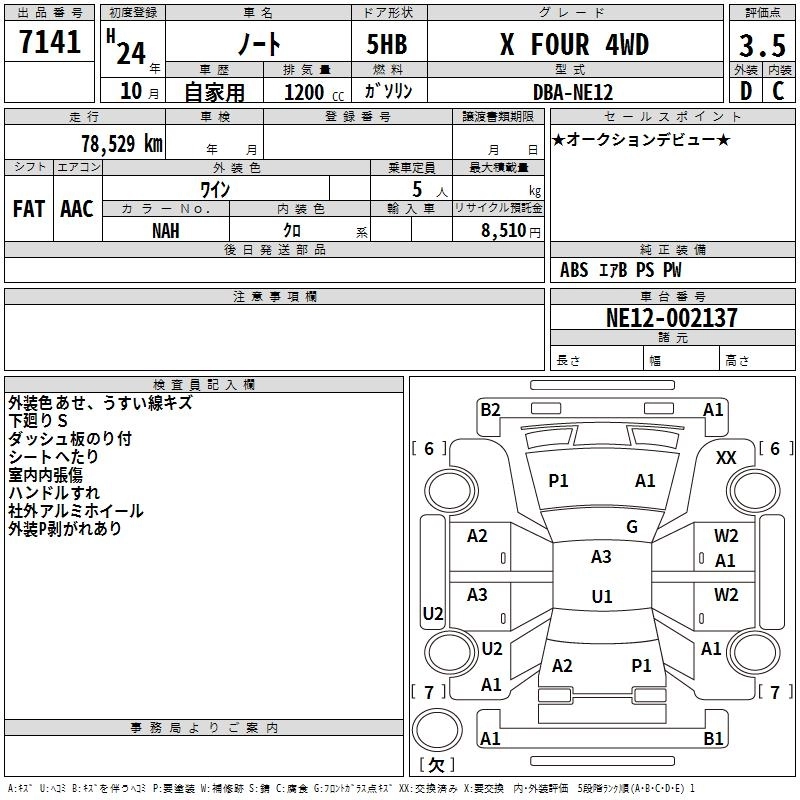 NISSAN NOTE 2012 г., лот № 7141