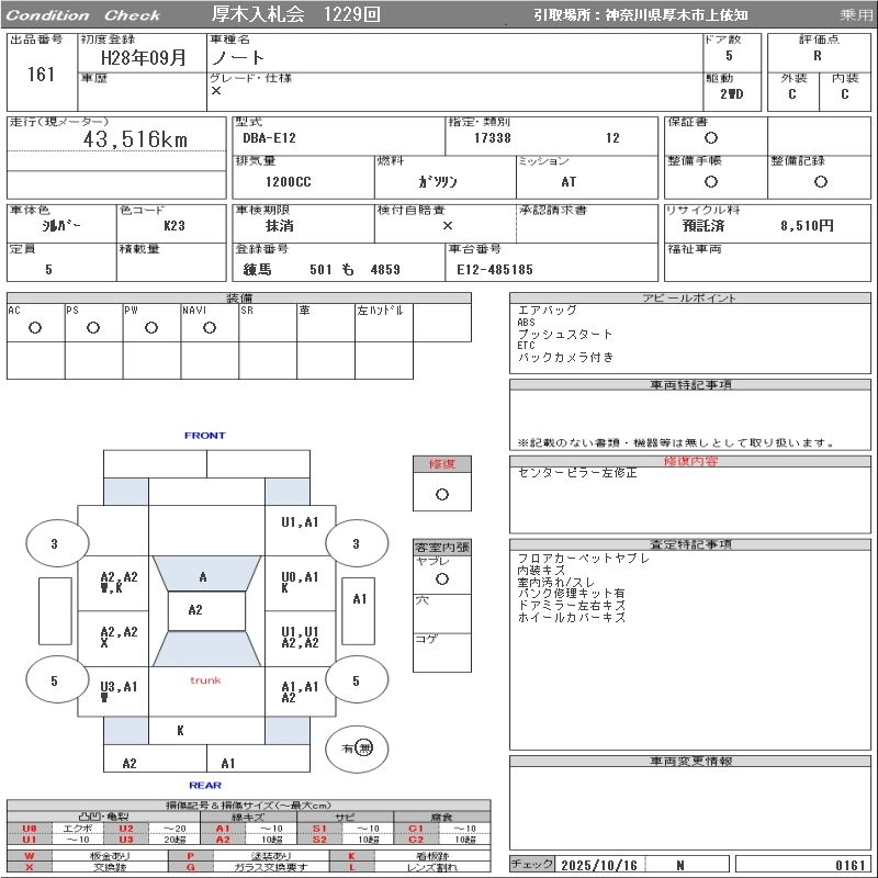 NISSAN NOTE 2016 г., лот № 161