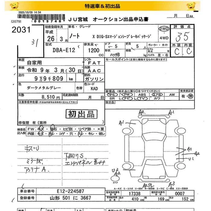 NISSAN NOTE 2014 г., лот № 2031