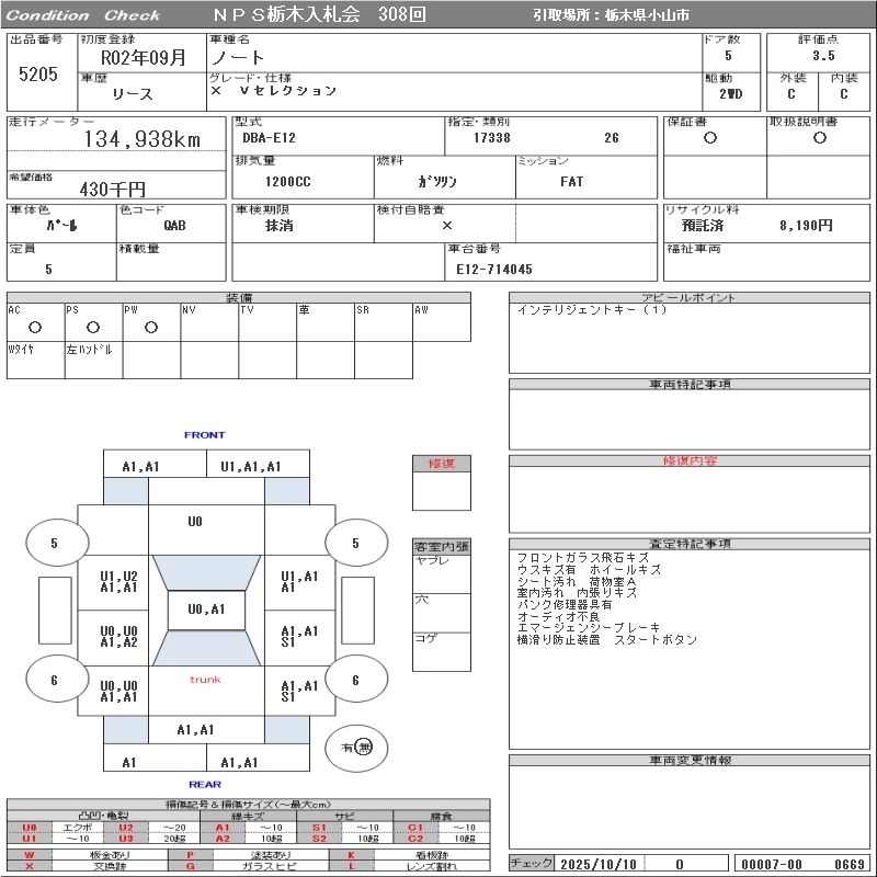Статус выставлен на аукцион Лот 5205 Аукцион NPS Tochigi Дата аукциона 28.10.2025