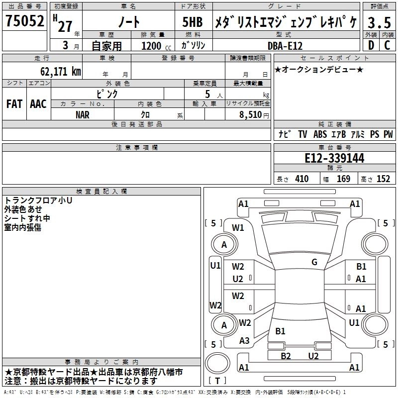 NISSAN NOTE 2015 г., лот № 75052