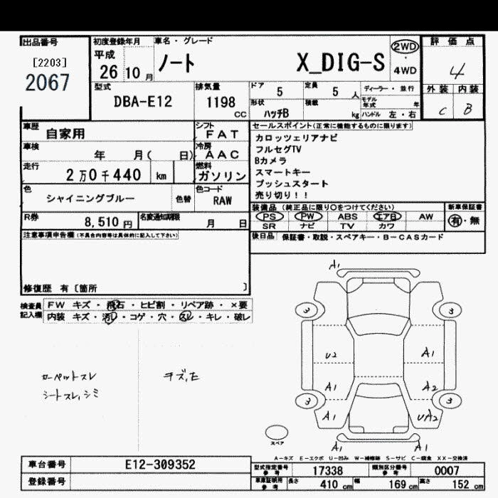 NISSAN NOTE 2014 г., лот № 2067