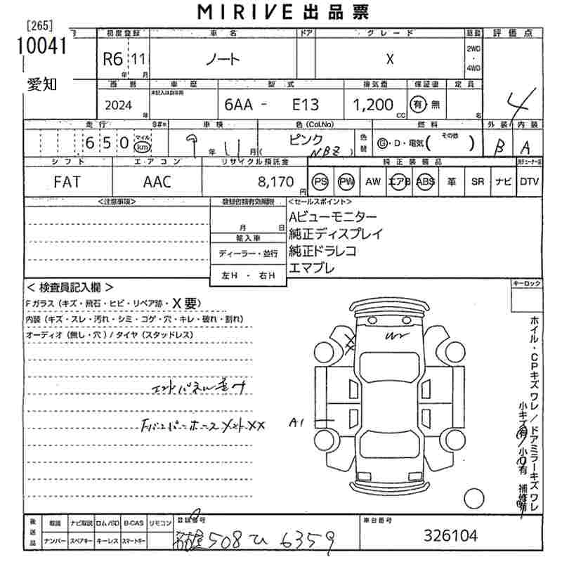 Статус не продан Лот 10041 Аукцион MIRIVE Aichi Дата аукциона 07.11.2025