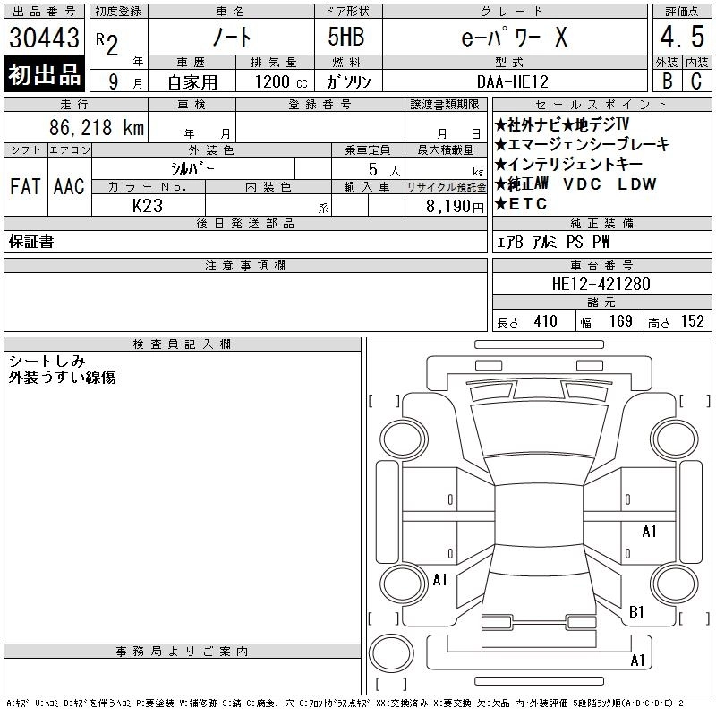 Статус продан Лот 30443 Аукцион CAA Chubu Дата аукциона 05.11.2025
