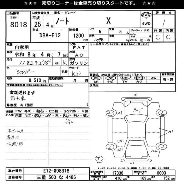 NISSAN NOTE 2013 г., лот № 8018