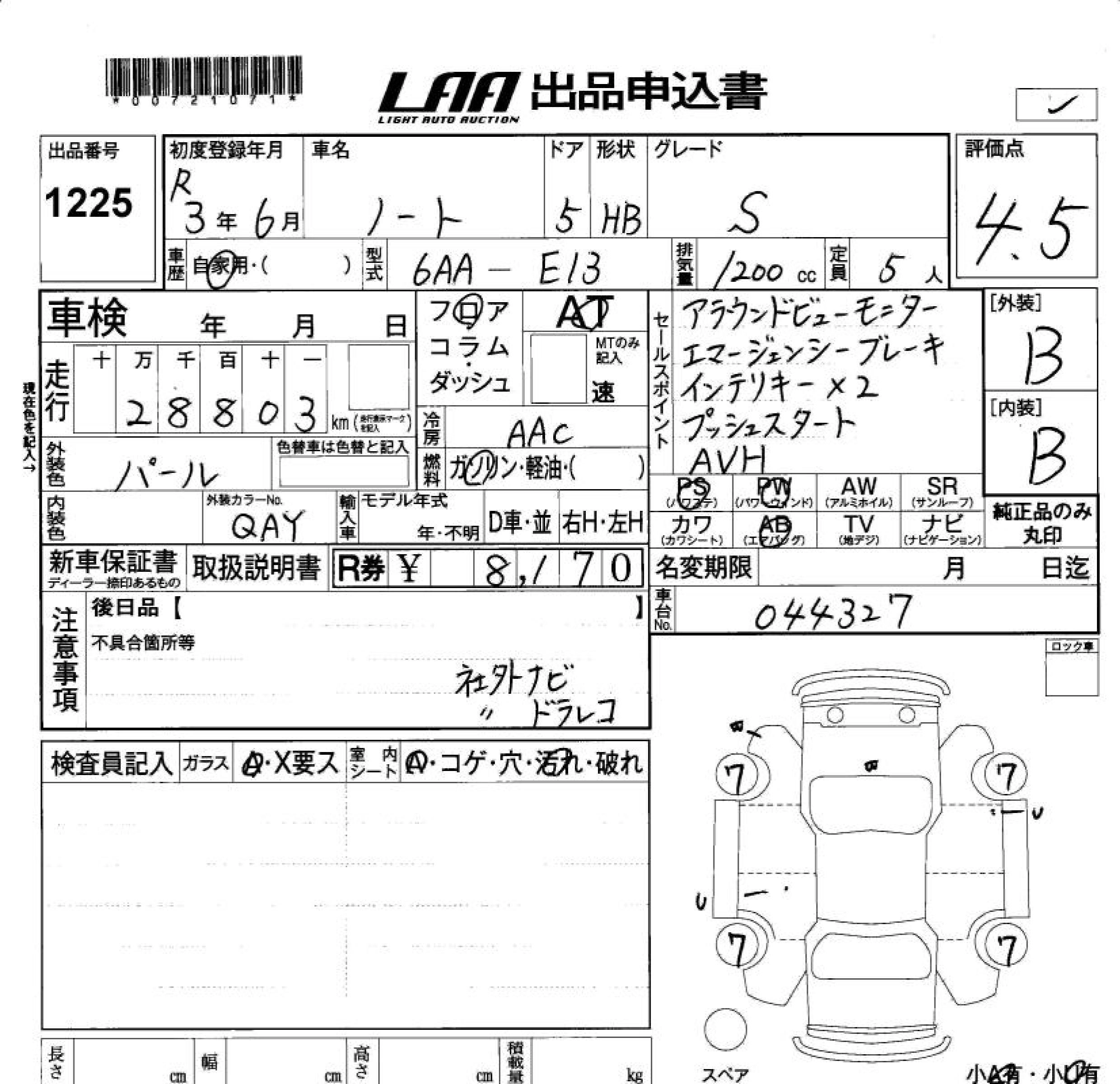 NISSAN NOTE 2021 г., лот № 1225