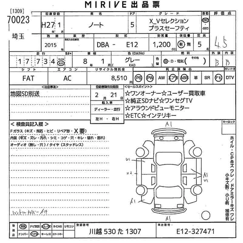 NISSAN NOTE 2015 г., лот № 70023