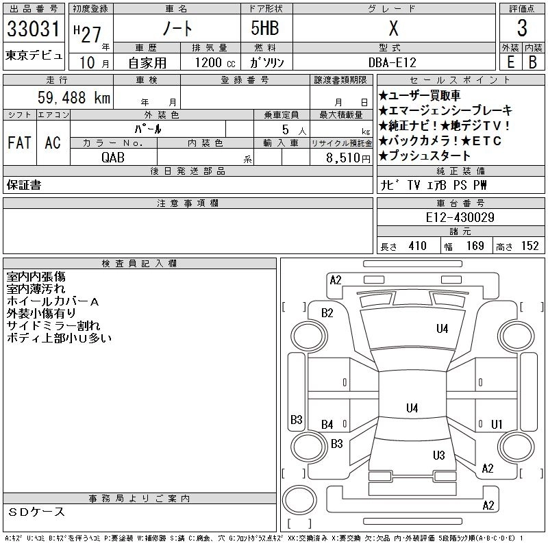 NISSAN NOTE 2015 г., лот № 33031