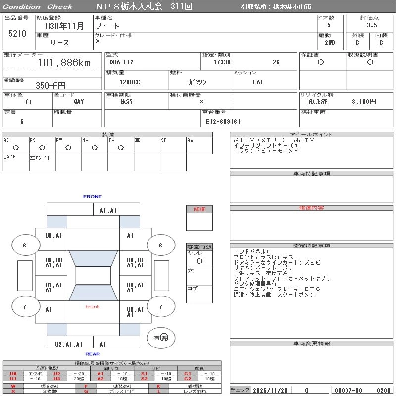 Статус выставлен на аукцион Лот 5210 Аукцион NPS Tochigi Дата аукциона 09.12.2025