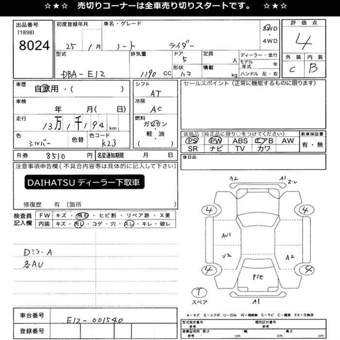 NISSAN NOTE 2013 г., лот № 8024