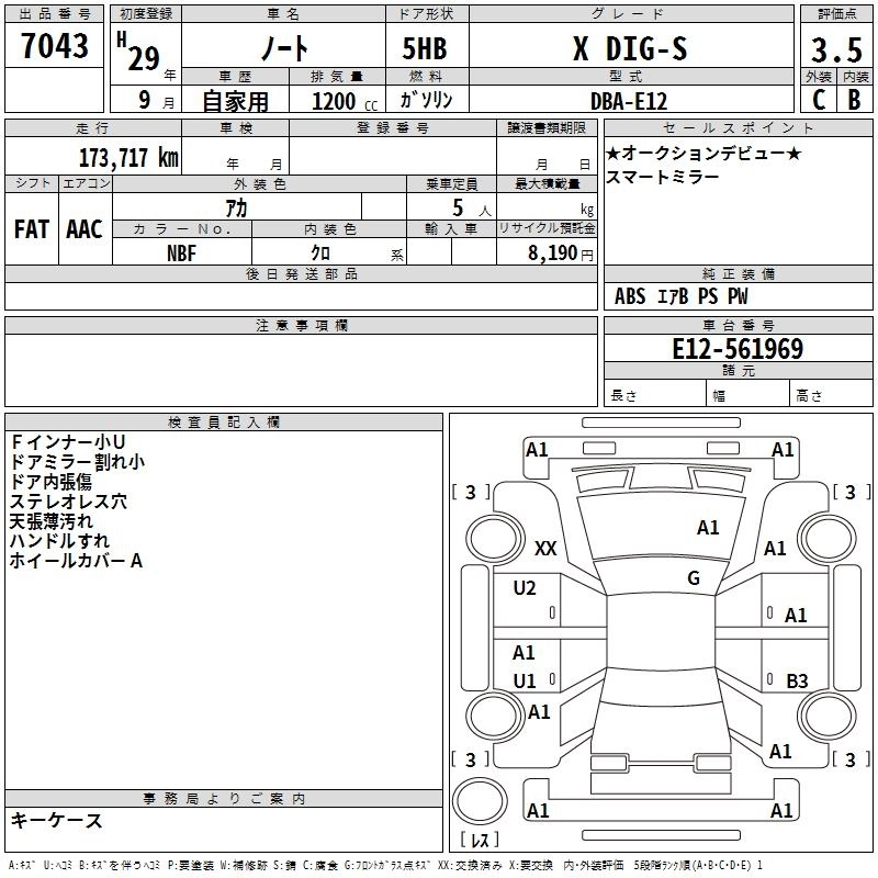 NISSAN NOTE 2017 г., лот № 7043