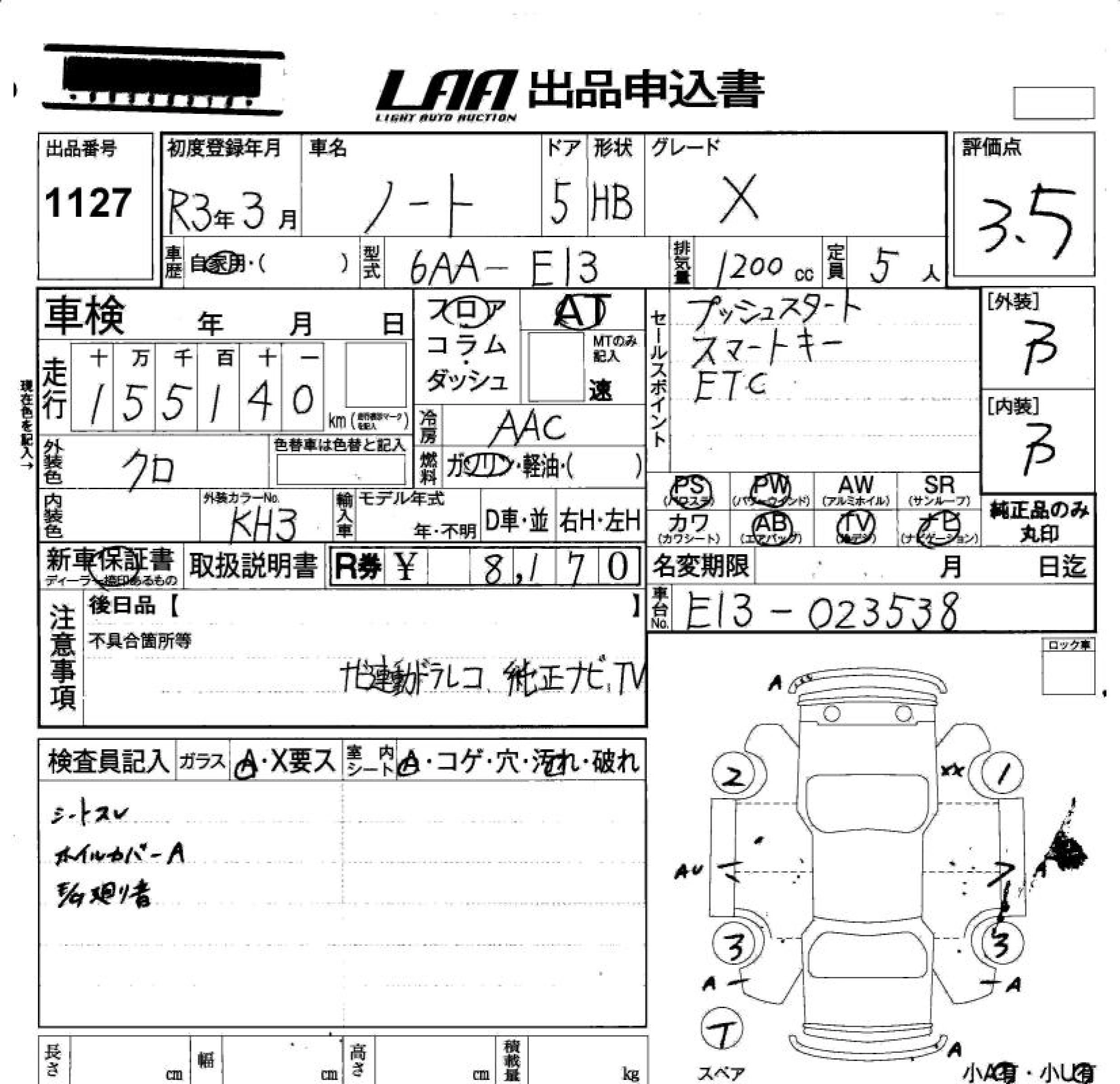 NISSAN NOTE 2021 г., лот № 1127