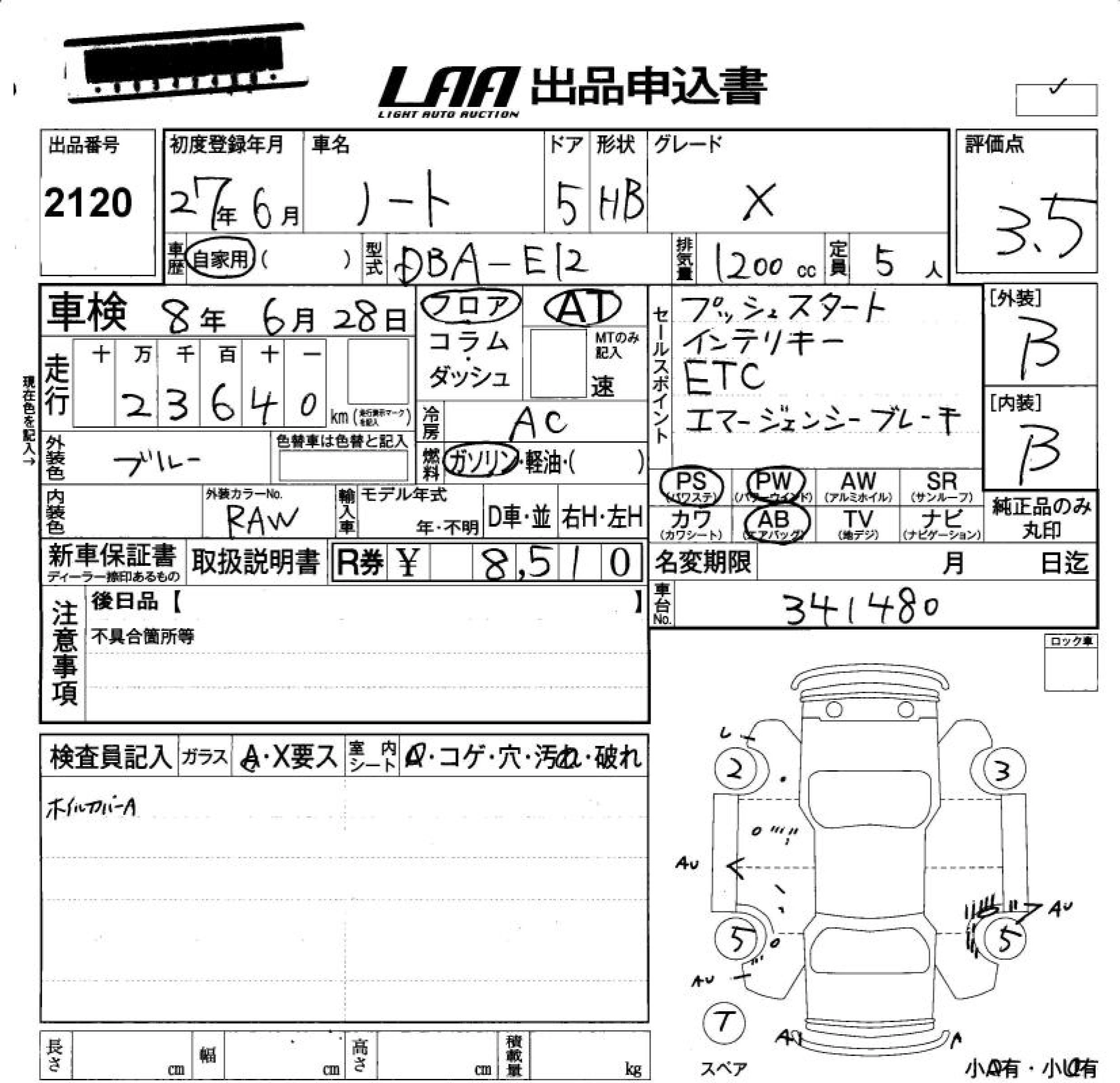 NISSAN NOTE 2015 г., лот № 2120