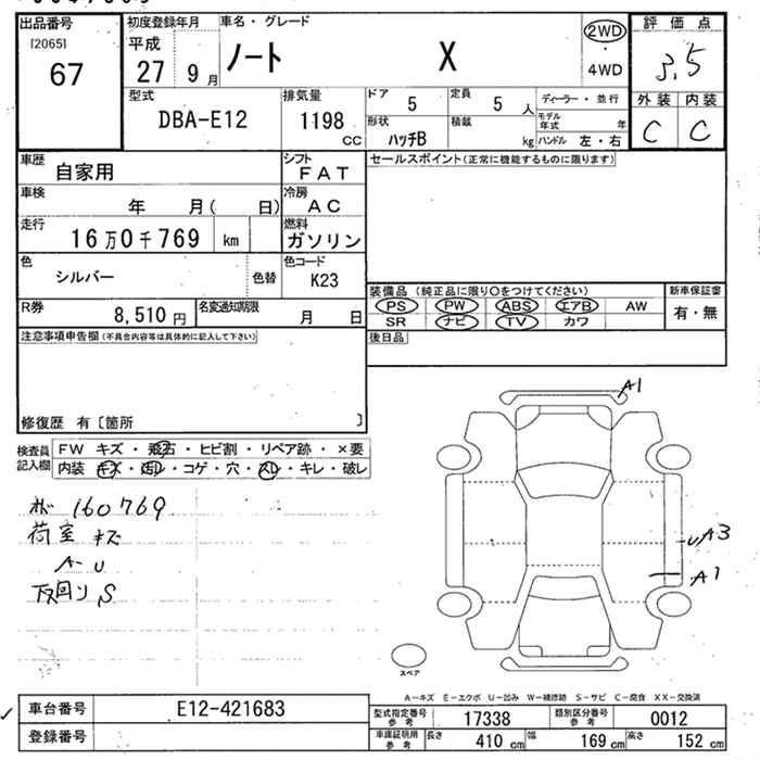 NISSAN NOTE 2015 г., лот № 67