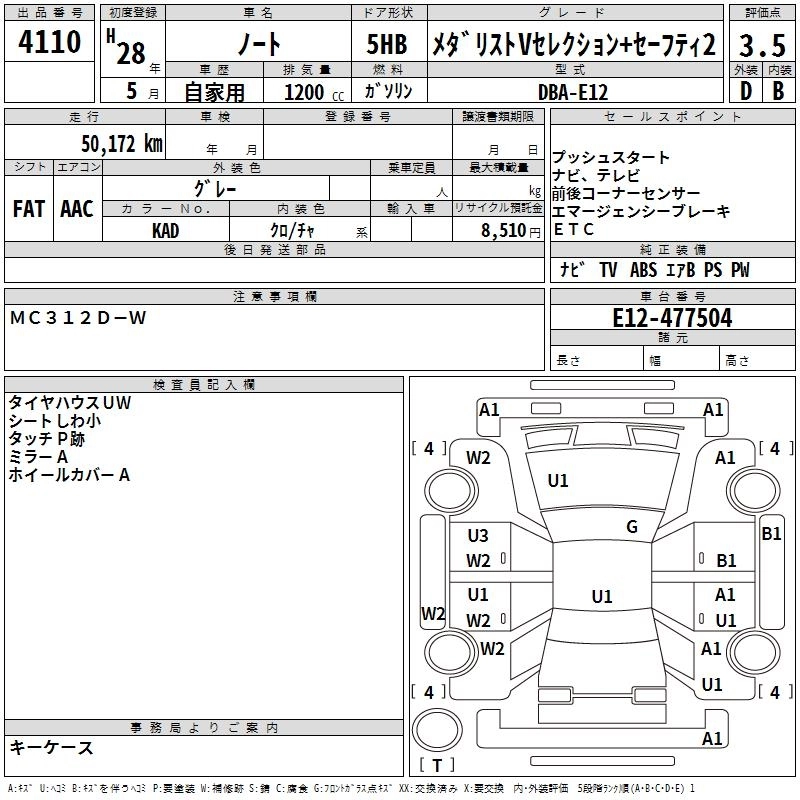 NISSAN NOTE 2016 г., лот № 4110