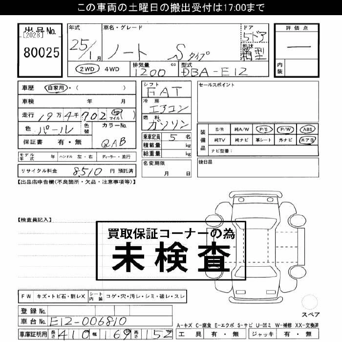 NISSAN NOTE 2013 г., лот № 80025
