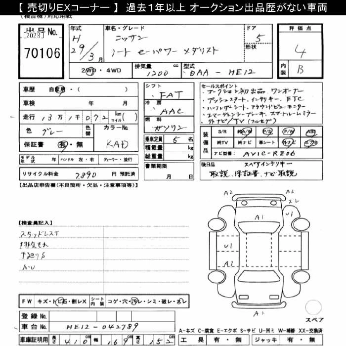 NISSAN NOTE 2017 г., лот № 70106