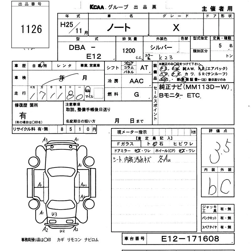 NISSAN NOTE 2013 г., лот № 1126