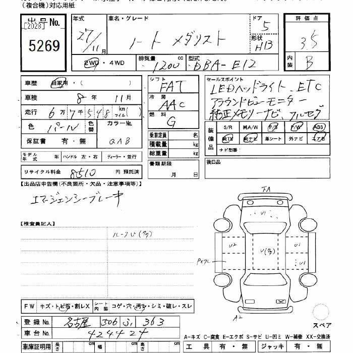 NISSAN NOTE 2015 г., лот № 5269
