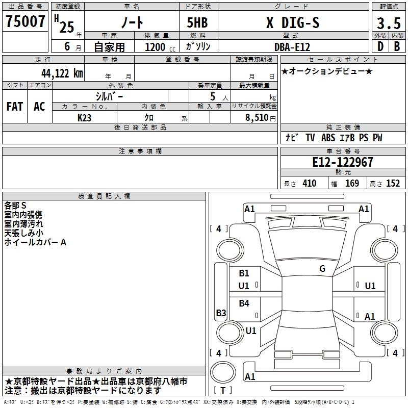 NISSAN NOTE 2013 г., лот № 75007
