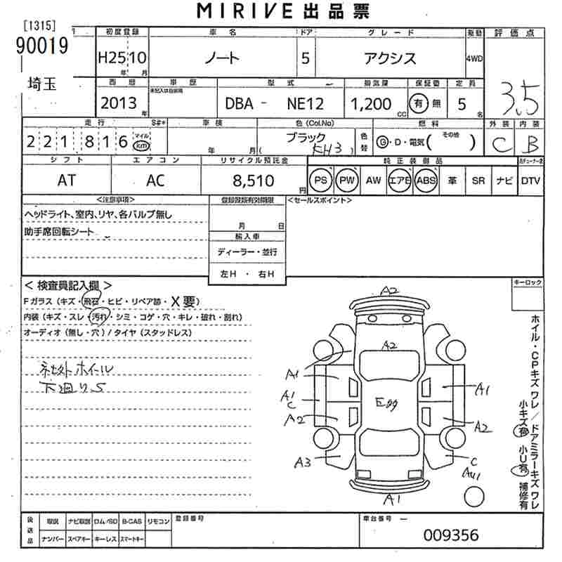 Год выпуска2013 Пробег 222 000 км КузовNE12 Комплектация AXIS