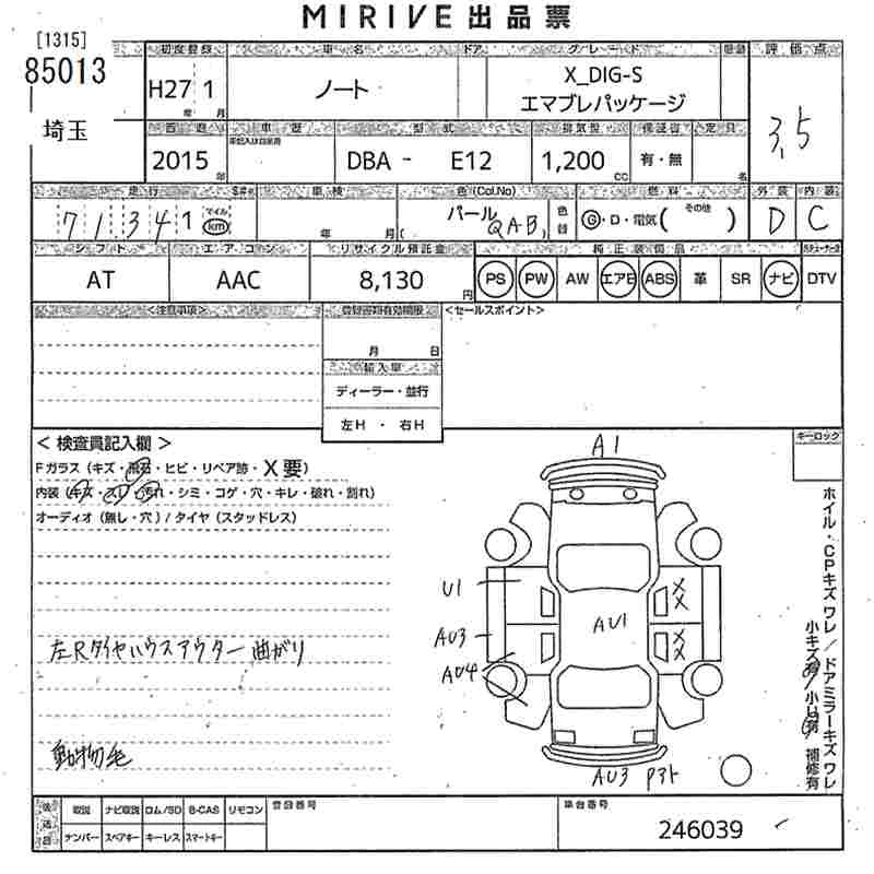 NISSAN NOTE 2015 г., лот № 85013