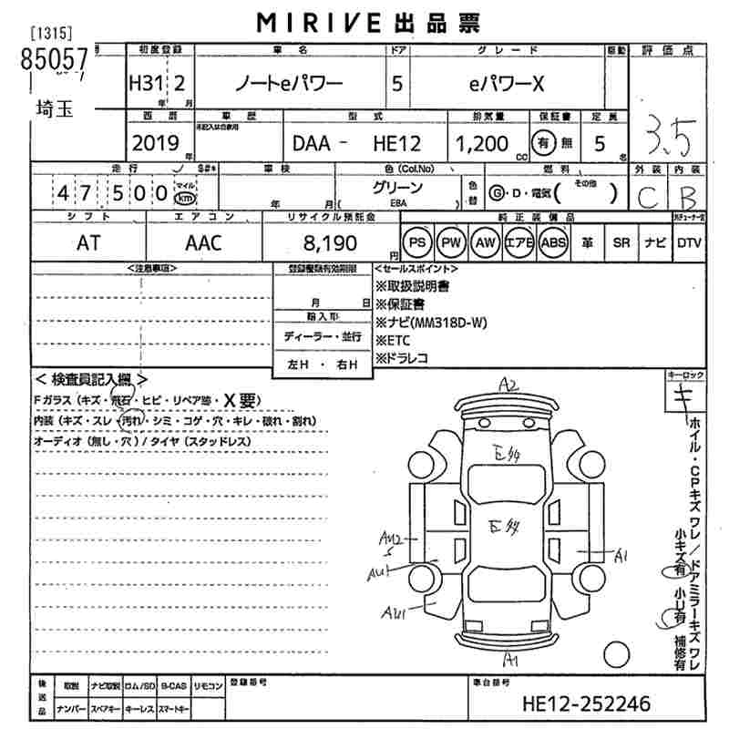 NISSAN NOTE 2019 г., лот № 85057
