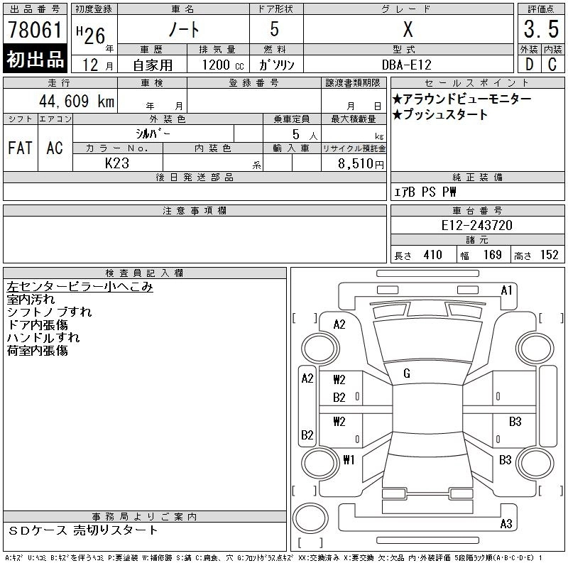 NISSAN NOTE 2014 г., лот № 78061