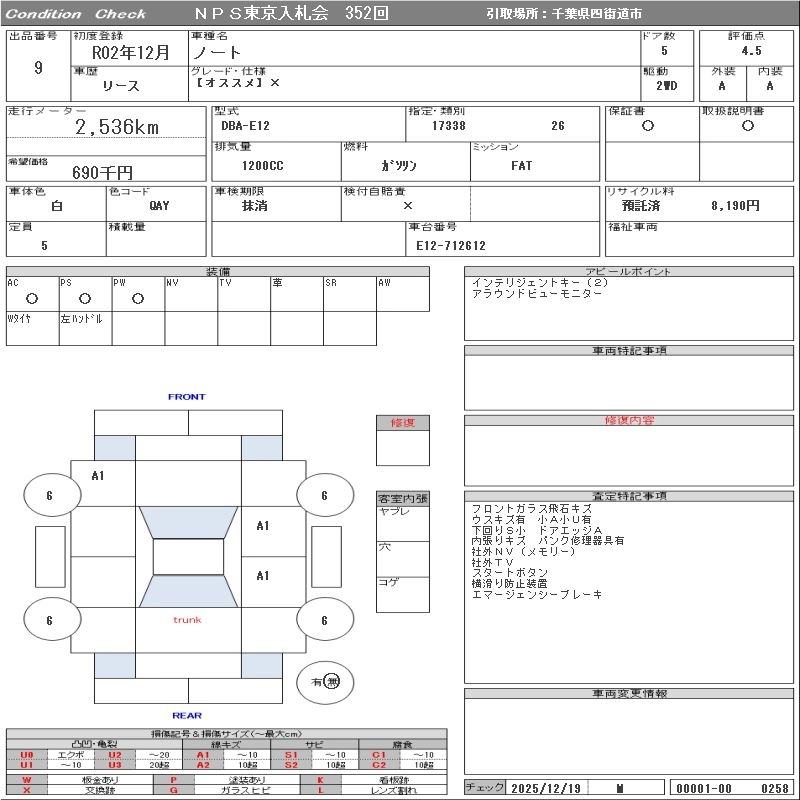 NISSAN NOTE 2020 г., лот № 9