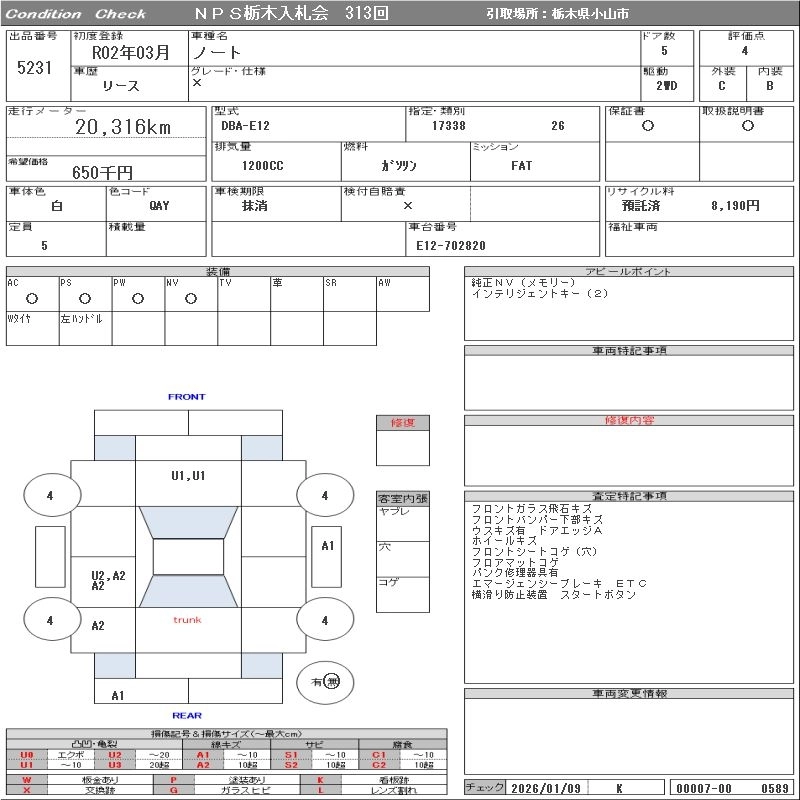 Статус выставлен на аукцион Лот 5231 Аукцион NPS Tochigi Дата аукциона 27.01.2026