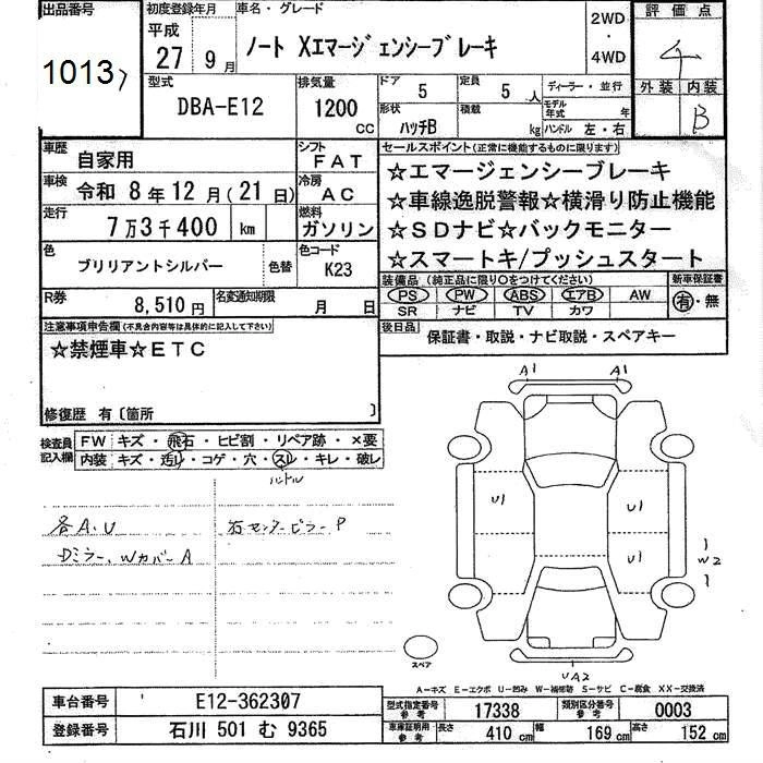 NISSAN NOTE 2015 г., лот № 1013