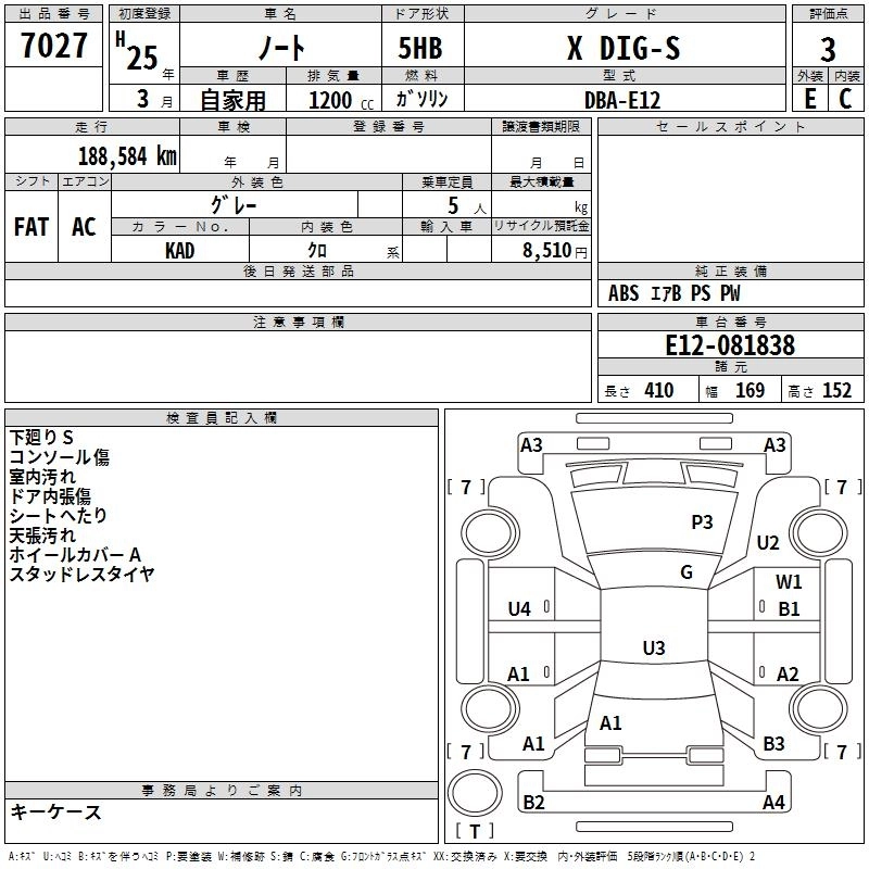 NISSAN NOTE 2013 г., лот № 7027