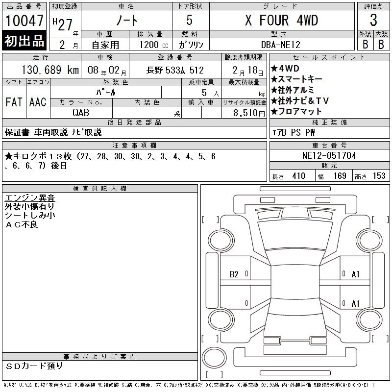 NISSAN NOTE 2015 г., лот № 10047