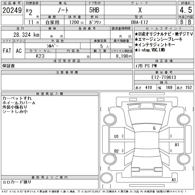 NISSAN NOTE 2020 г., лот № 20249