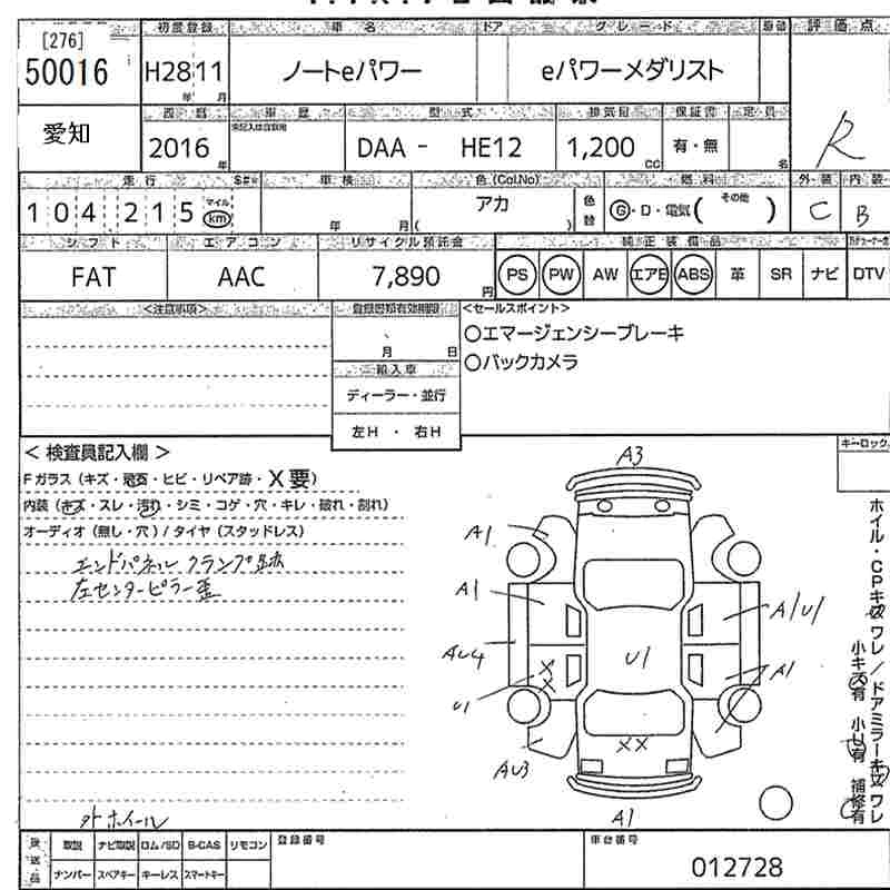 NISSAN NOTE 2016 г., лот № 50016