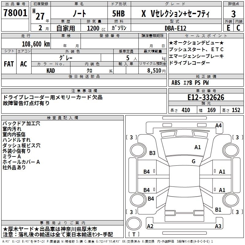 NISSAN NOTE 2015 г., лот № 78001