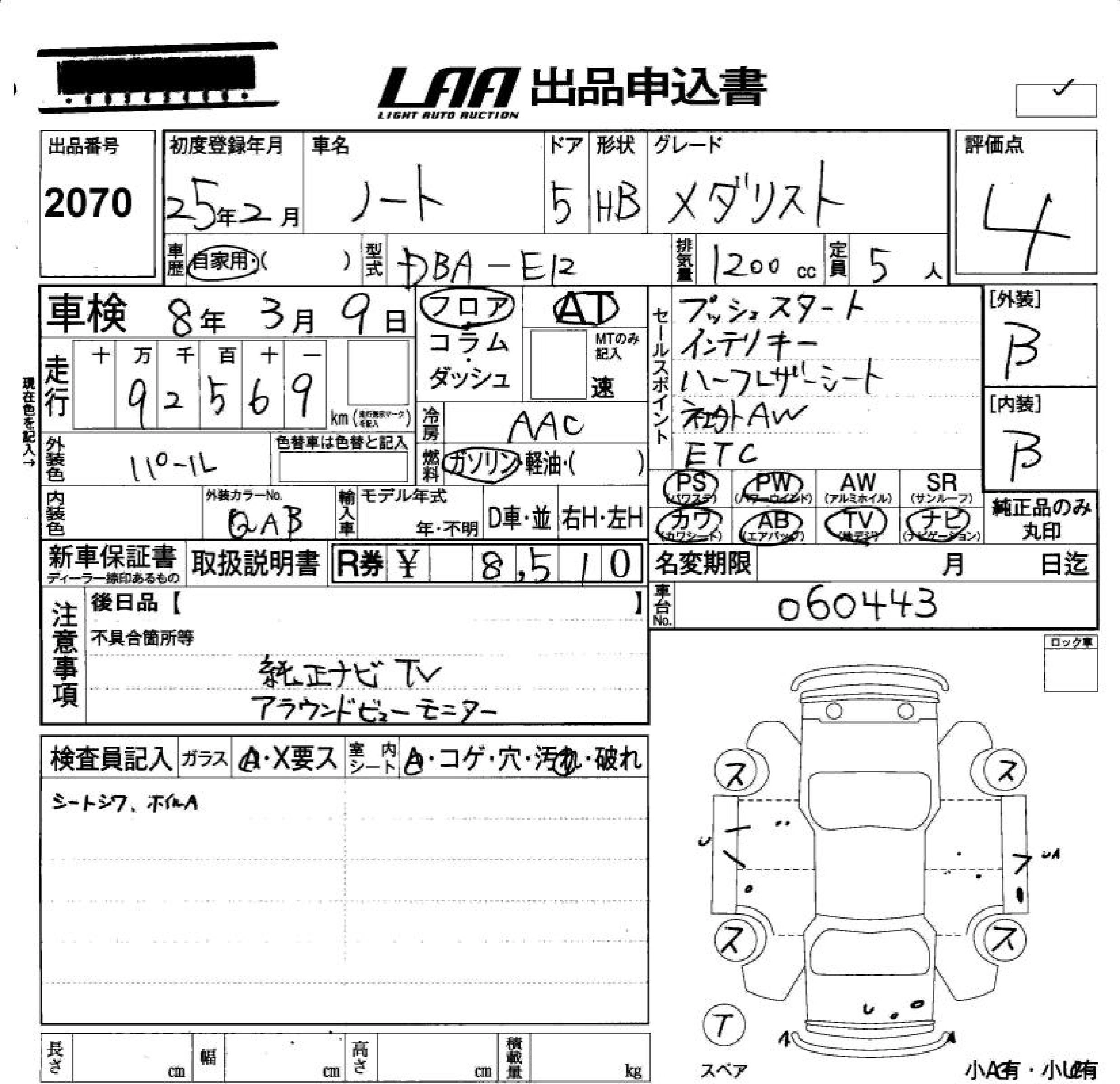 NISSAN NOTE 2013 г., лот № 2070