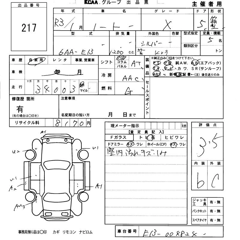NISSAN NOTE 2021 г., лот № 217