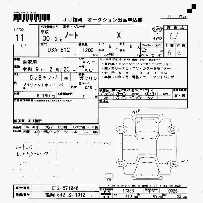 Статус продан Лот 11 Аукцион JU Fukuoka Дата аукциона 30.01.2026