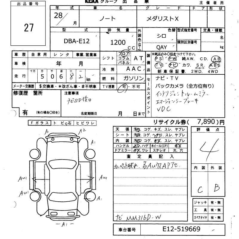 NISSAN NOTE 2016 г., лот № 27