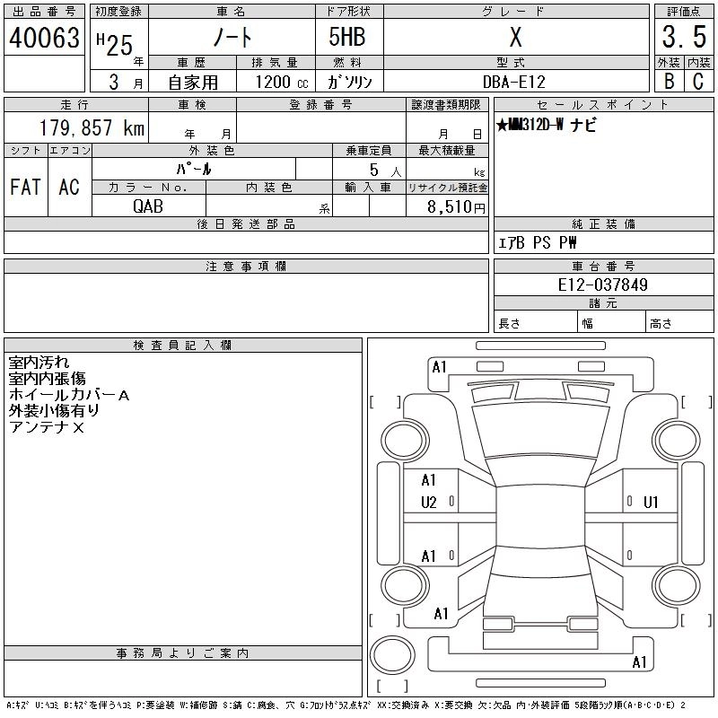 NISSAN NOTE 2013 г., лот № 40063