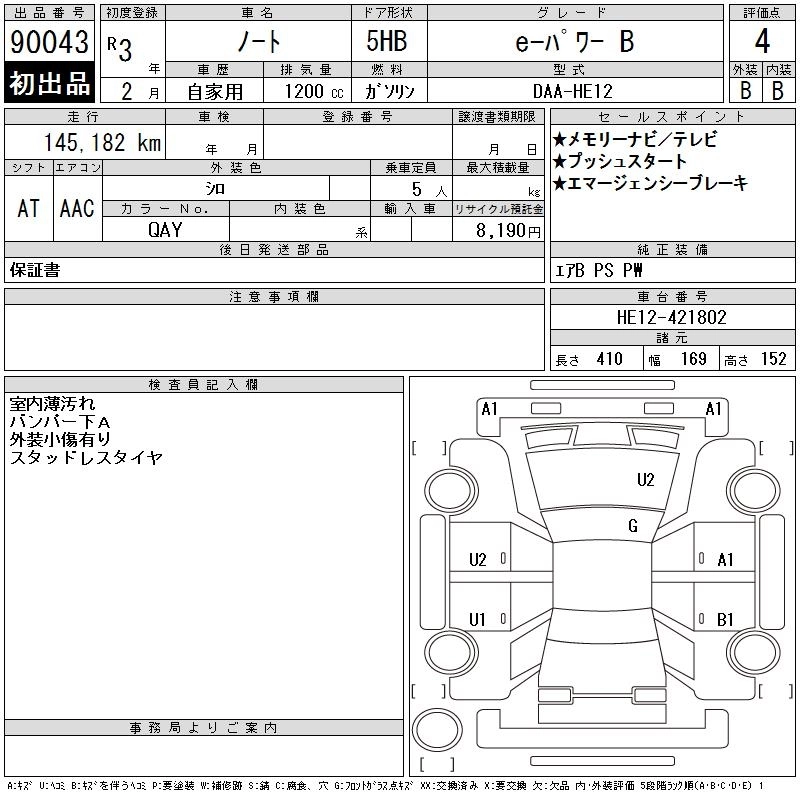 NISSAN NOTE 2021 г., лот № 90043