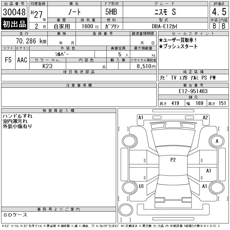 NISSAN NOTE 2015 г., лот № 30048