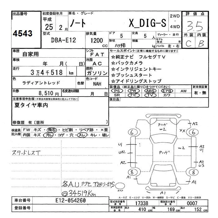 NISSAN NOTE 2013 г., лот № 4543