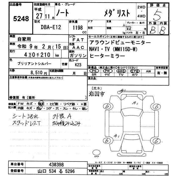 NISSAN NOTE 2015 г., лот № 5248