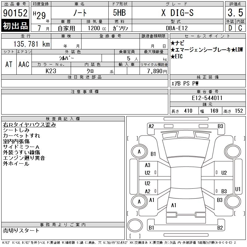 Статус выставлен на аукцион Лот 90152 Аукцион CAA Chubu Дата аукциона 11.03.2026