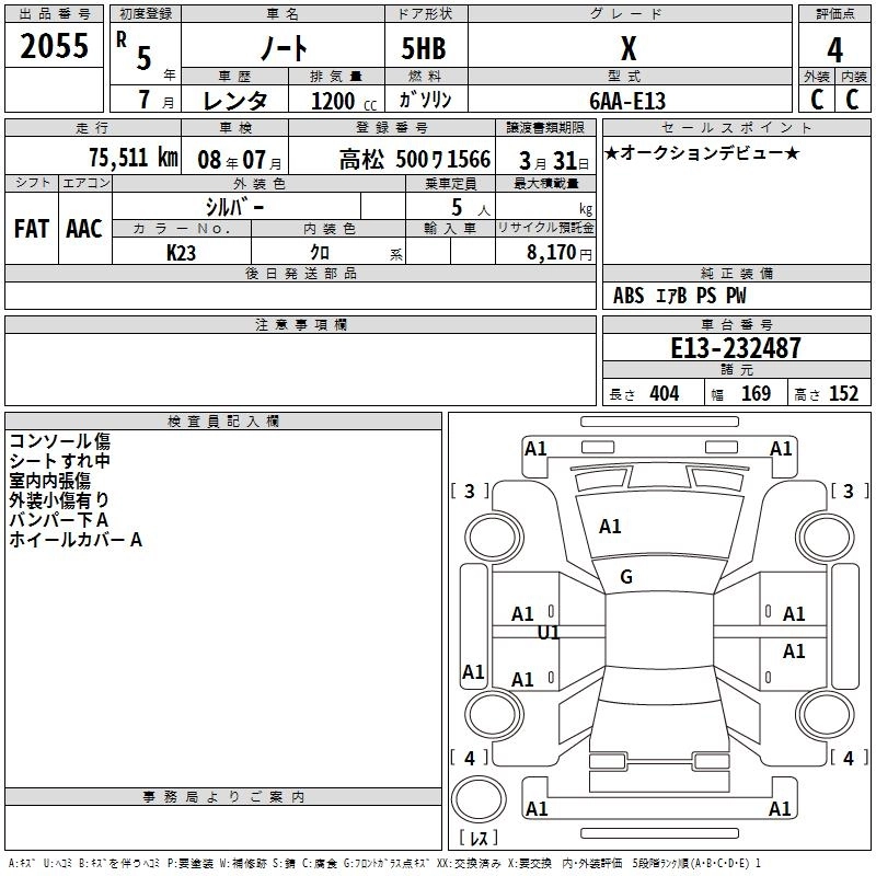 NISSAN NOTE 2023 г., лот № 2055